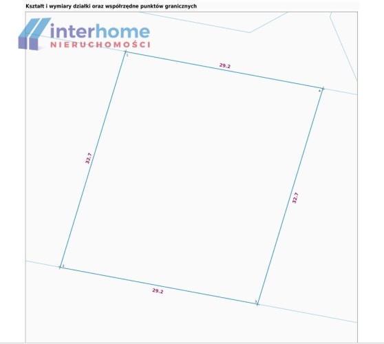 Działka ma kształt prostokąta. Jest płaska i na tę chwilę nieogrodzona.